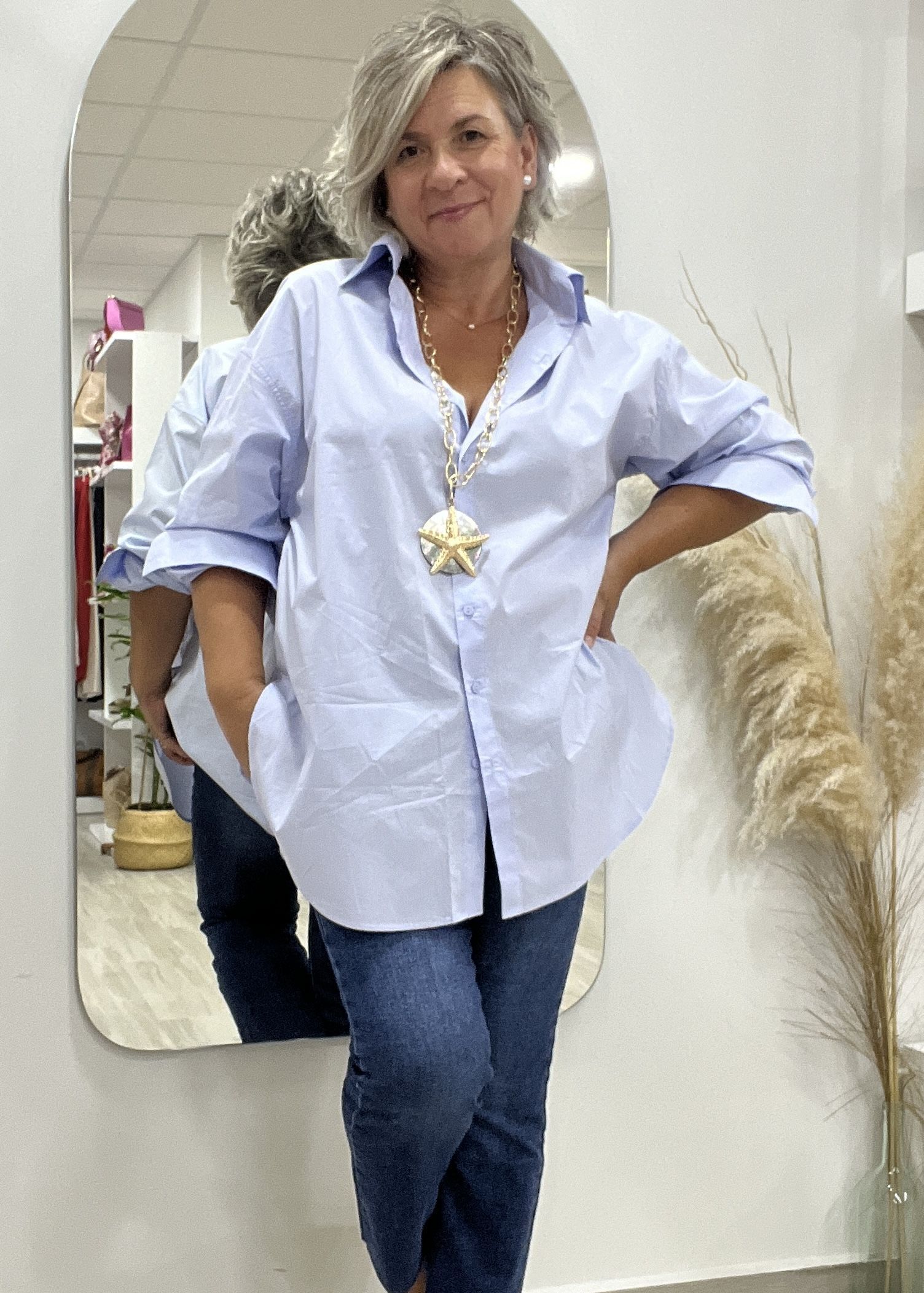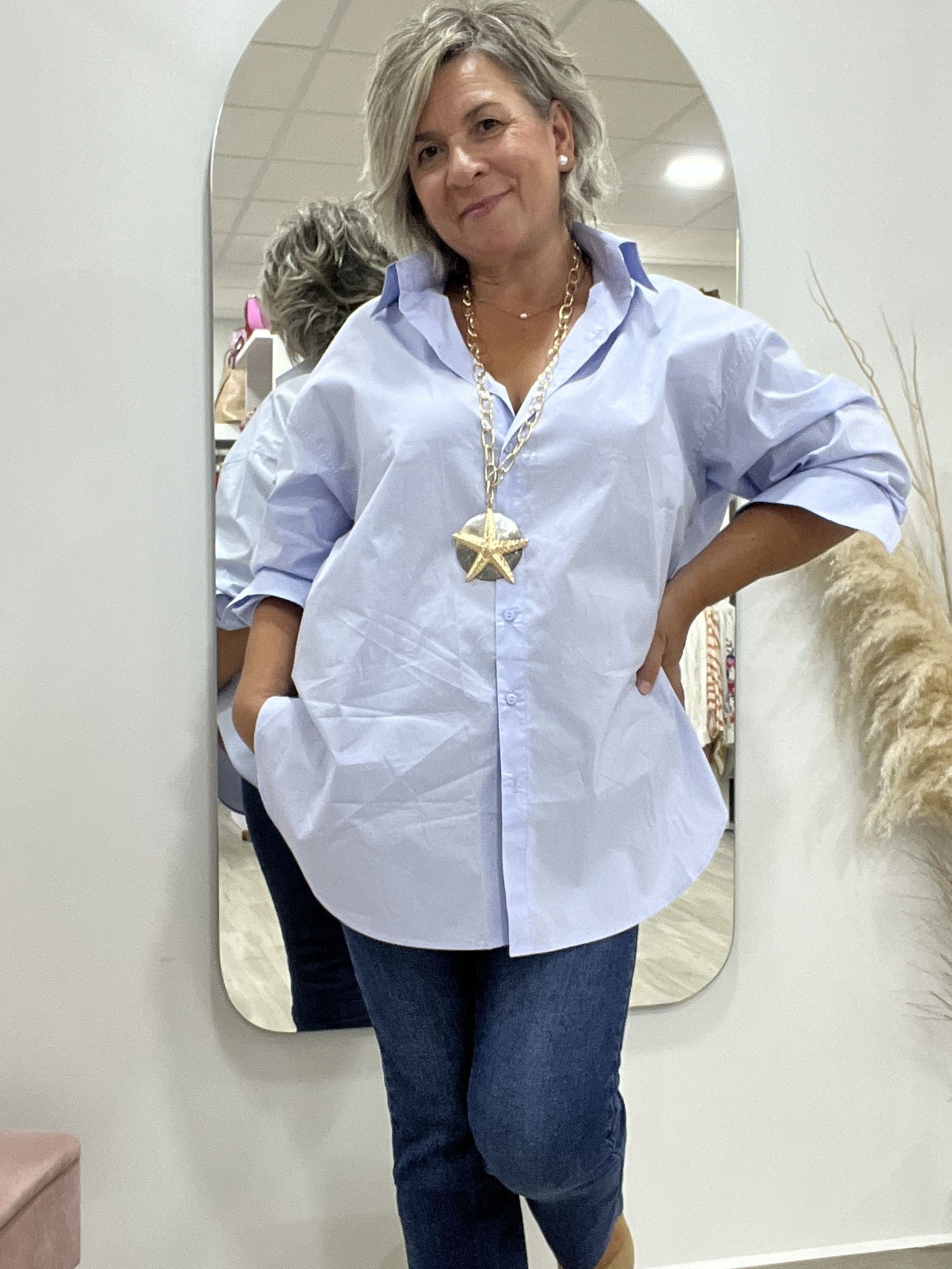 CAMISA CELESTE OVERSIZE