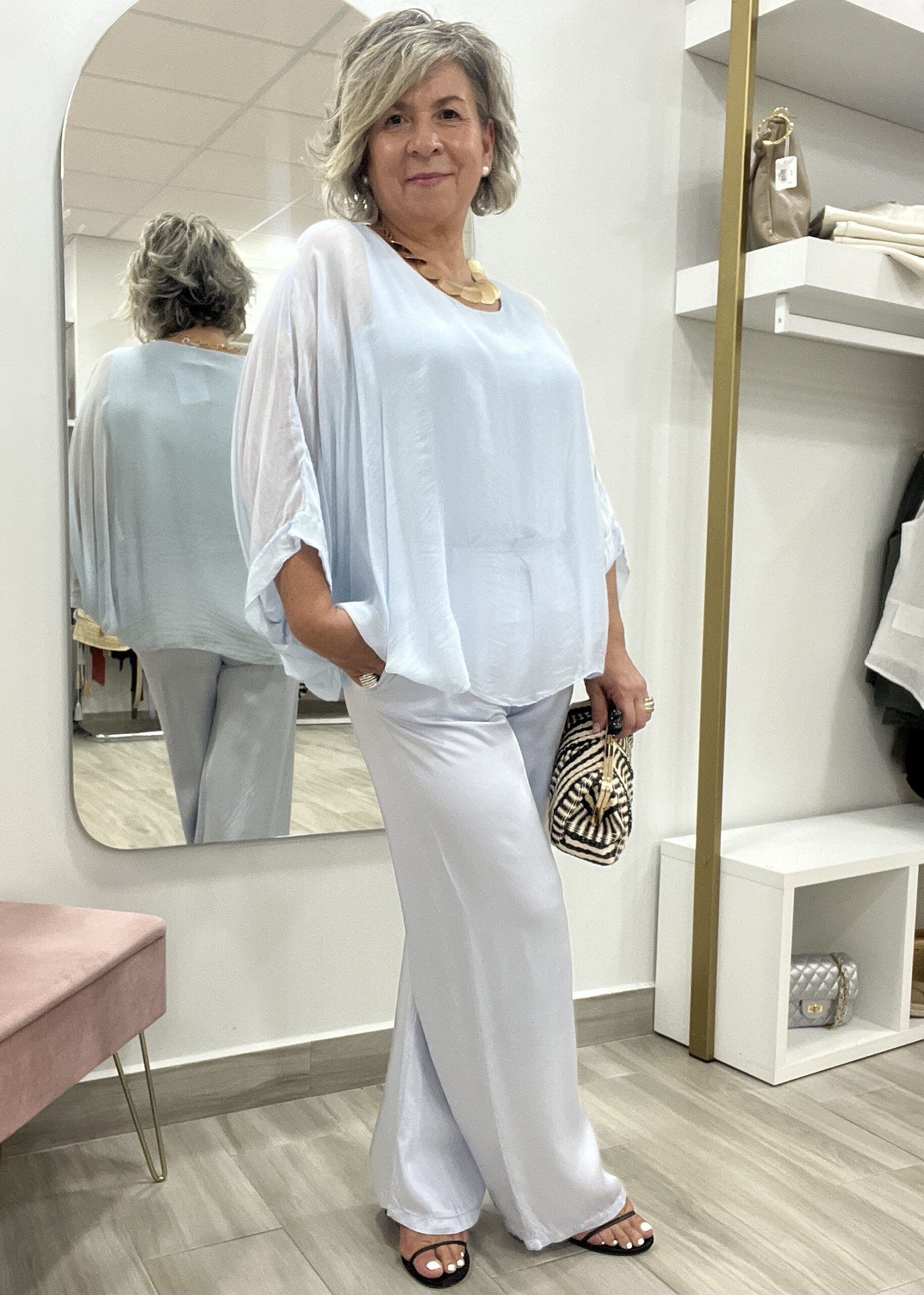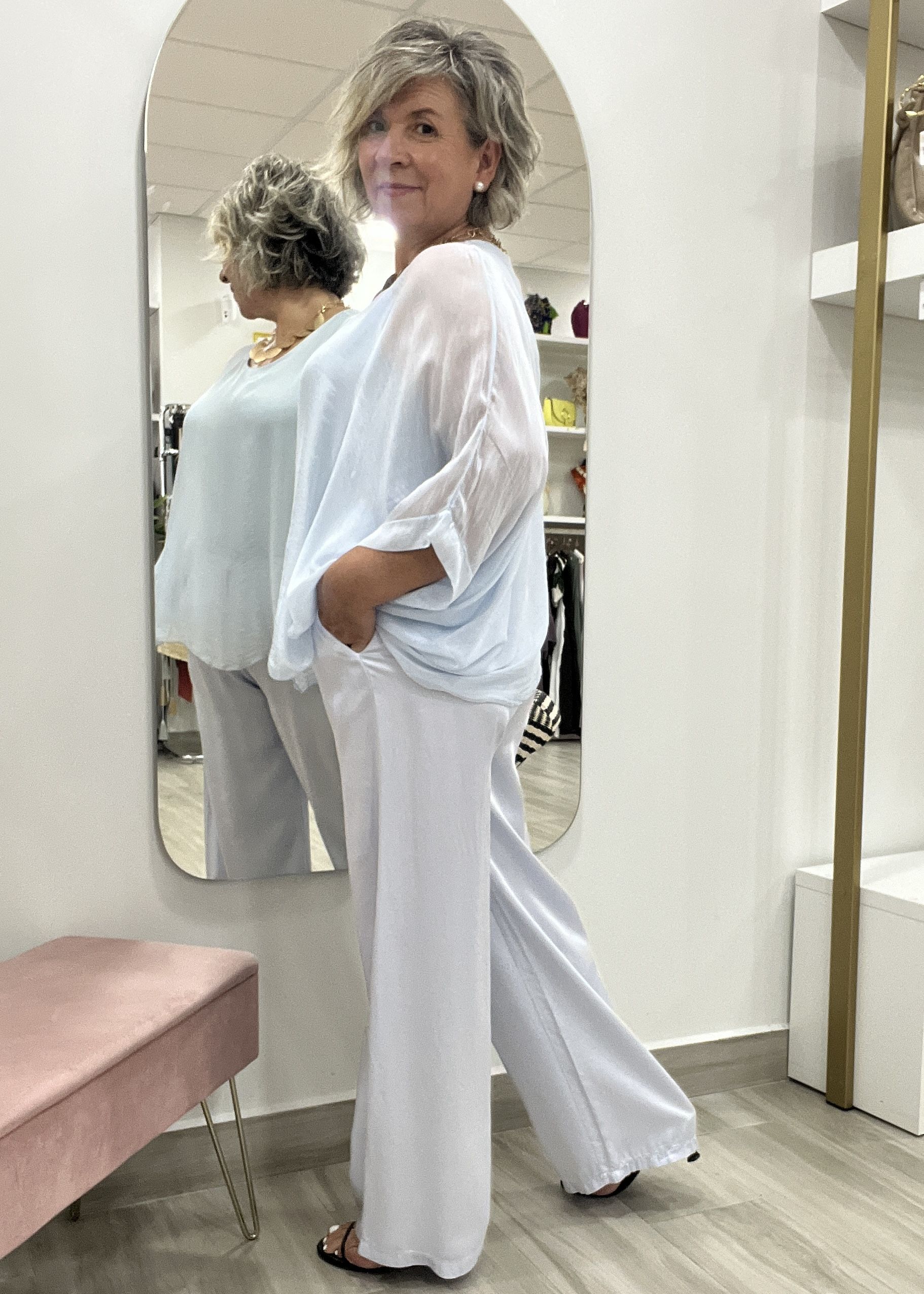 CAMISA SEDA CELESTE