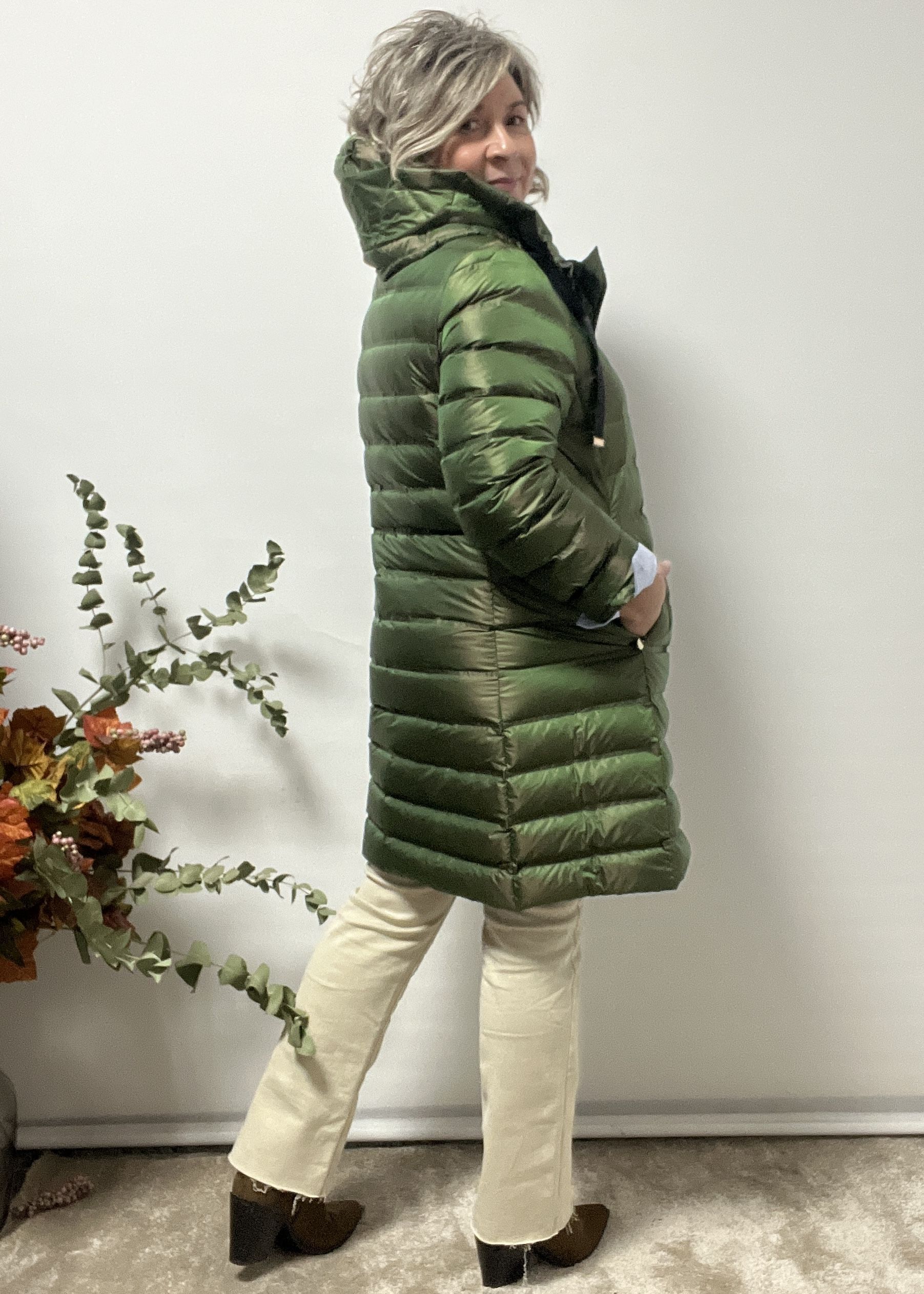 composicion : 100% poliester tallas : M largo 87 cm / ancho de sisa a sisa  52 cm : L largo 88 cm / ancho de sisa a sisa 54 cm : XL 89 cm / ancho de sisa a sisa 56 cm : XXL  largo 91 cm / ancho de sisa a sisa  59 cm color : verde chaqueta larga ligera no pesa nada ,con capucha, cierre de cremallera y bolsillos en los laterales con cremallera.