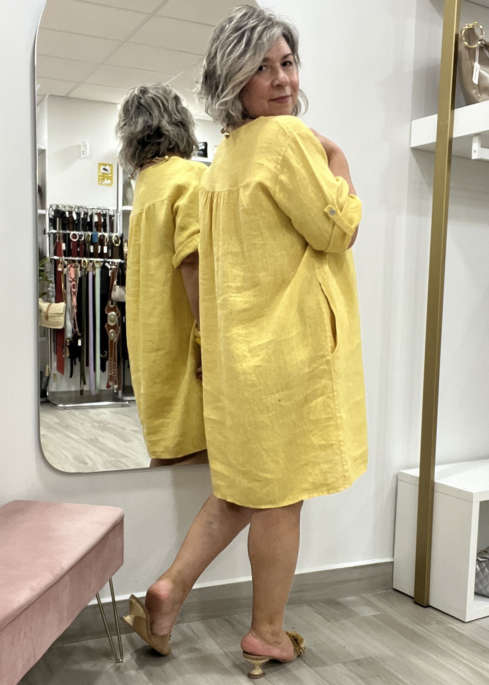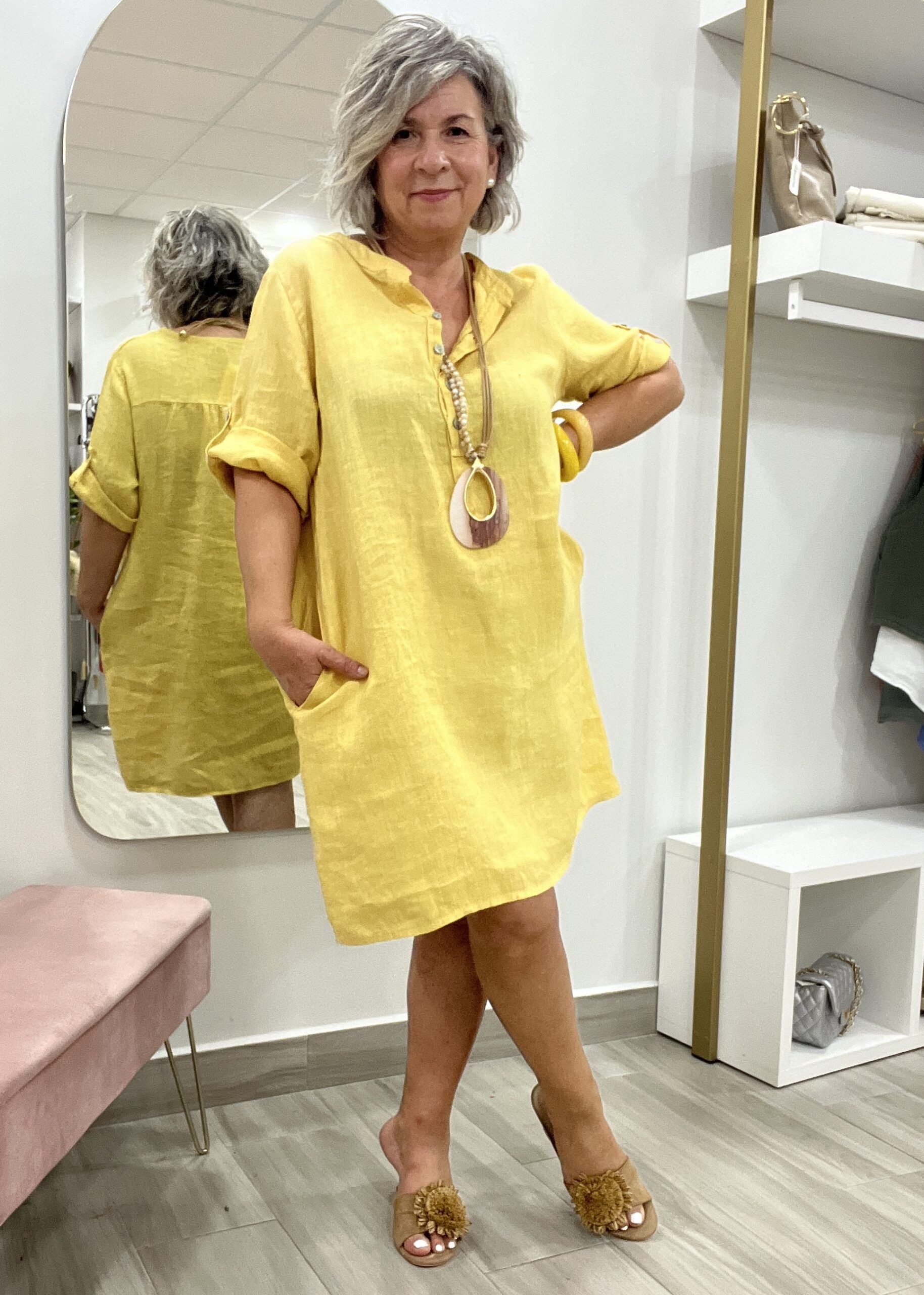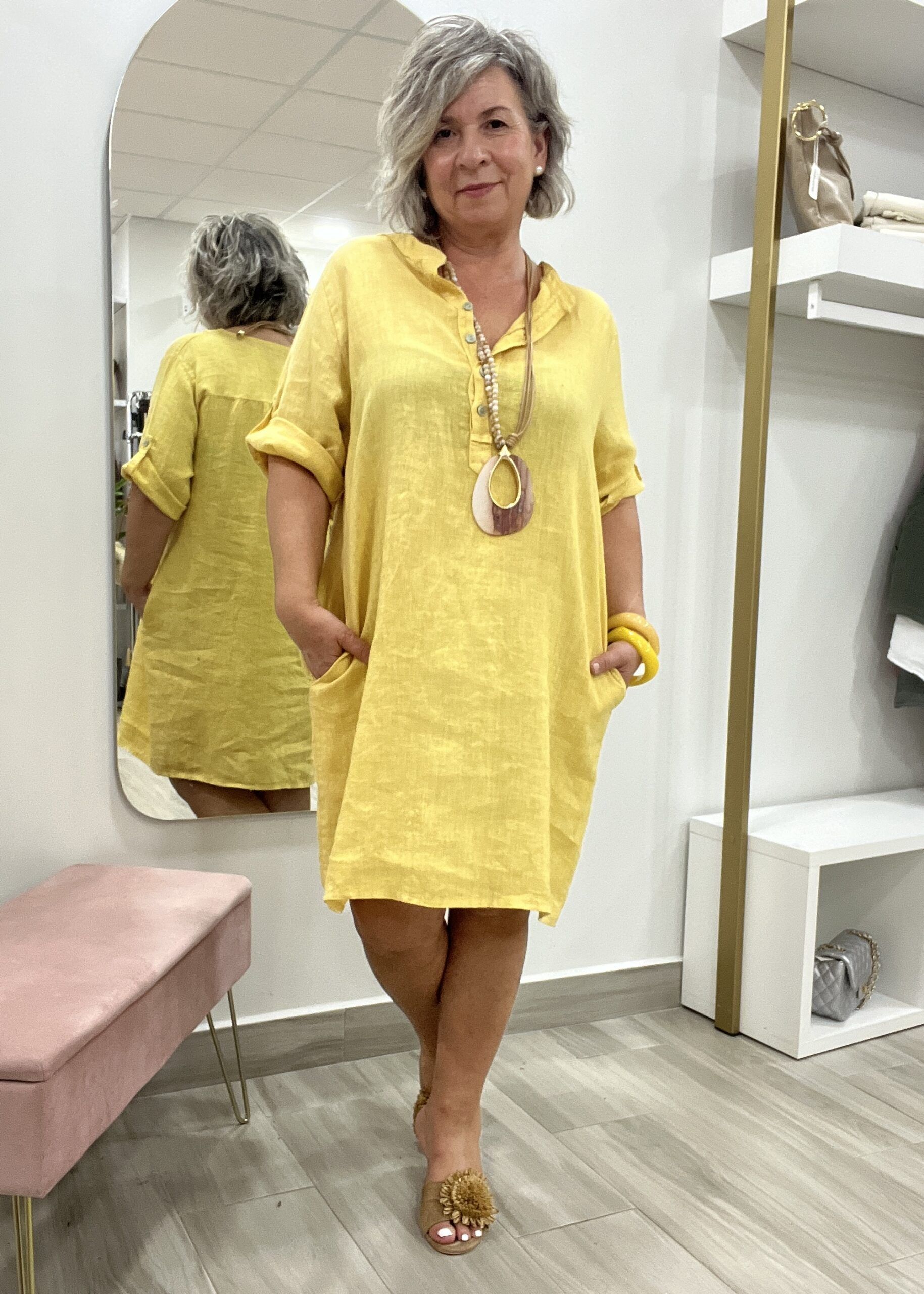 VESTIDO LINO BOLSILLOS AMARILLO